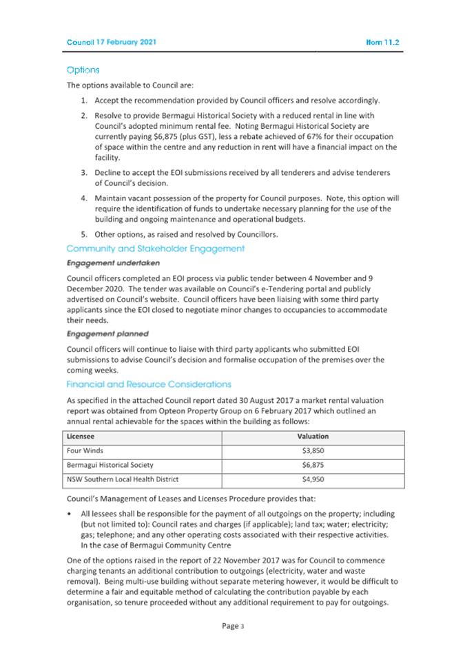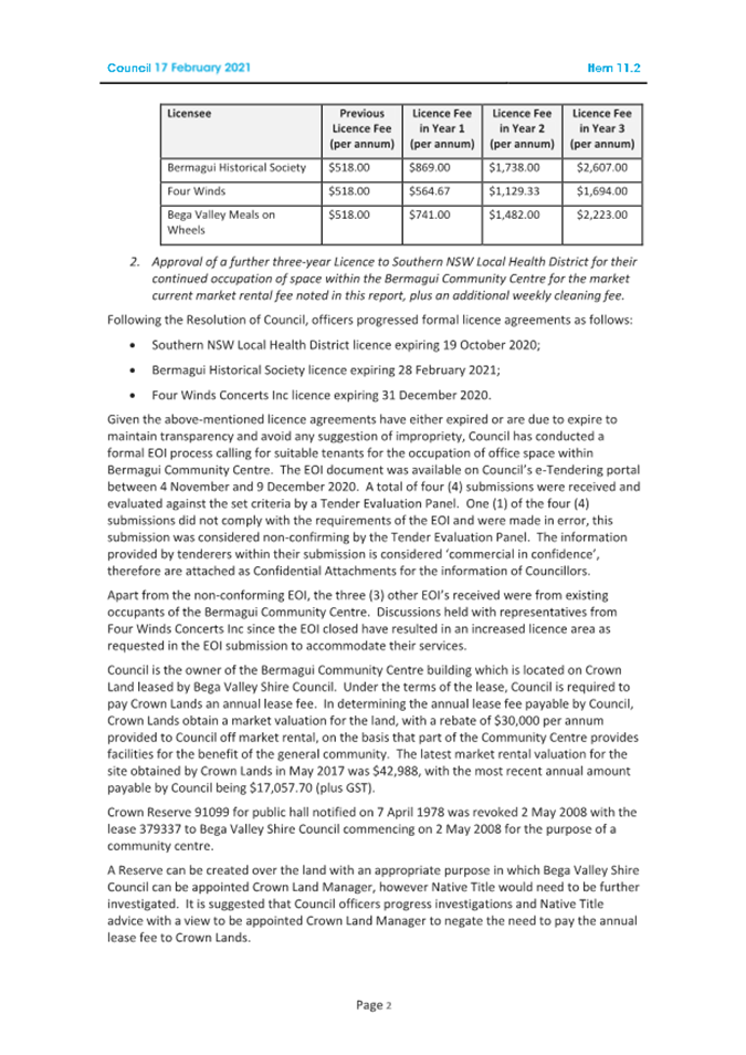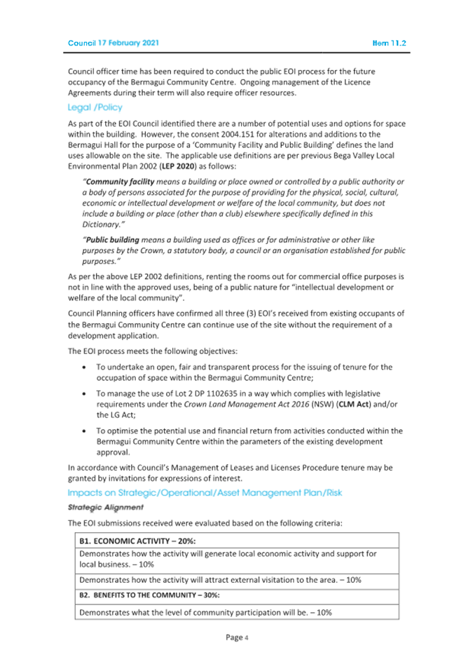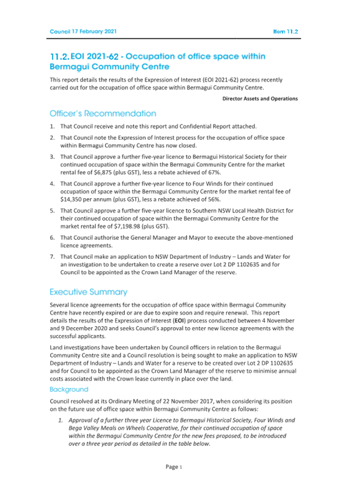 10.1 Bermagui Community Centre Licence Renewals................................................................... 432