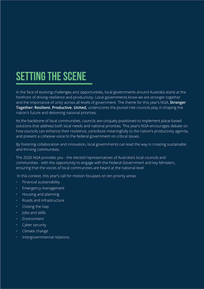 11.2 Australian Local Government Association (ALGA) 2026 National General Assembly - call for motions..................................................................................................................................................... 524
