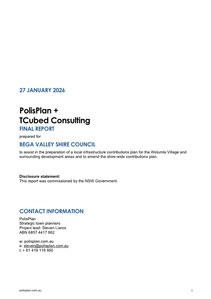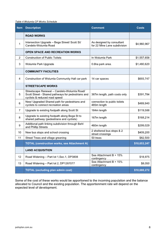 8.2 Draft Wolumla Local Infrastructure Contribution Plan......................................................... 281