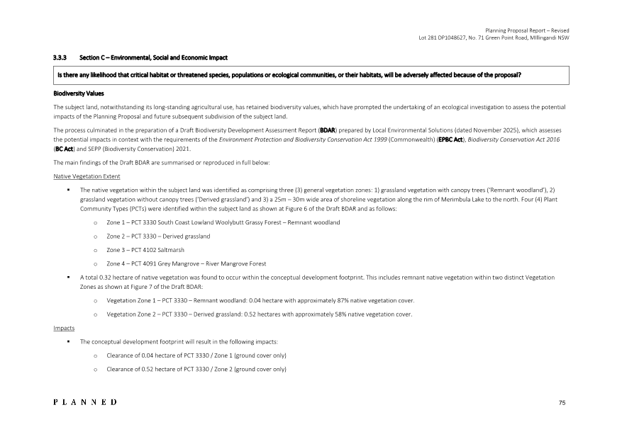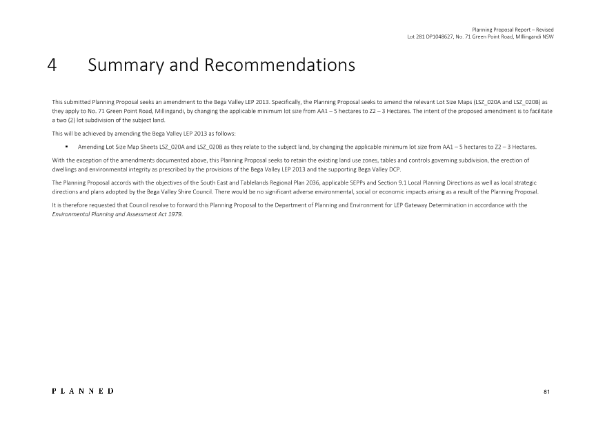 8.4 Planning Proposal for Rural Residential Rezoning at 71 Green Point Road, Millingandi 473